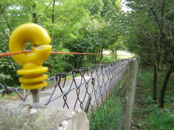 žica je izolirana od kontakata baš svugdje (plastični držači i slično) plus u ovom slučaju i bodljikava žica na vrhu: