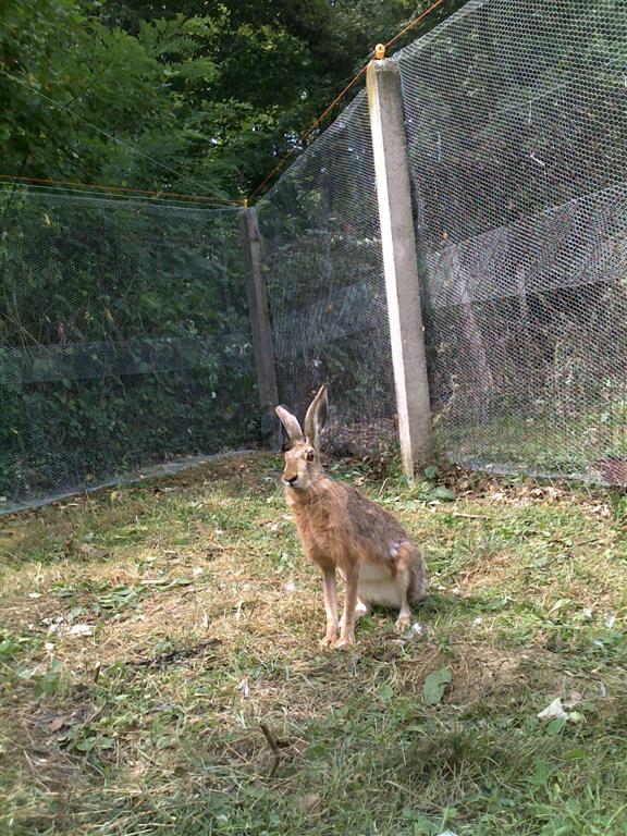 - cijeli kavez je do visine od 1,80 obložen dodatnom, sitnom žicom promjera okna 2 cm, jer bi se u suprotnom vrlo lako mogla privući predatorska životinja Mala Lasica (lat. M. nivalis ) koja može biti iznimno opasna. Također, sitna žica onemogućuje da veća životinja umetne šape u okna i popne se preko ograde. (slika desno)